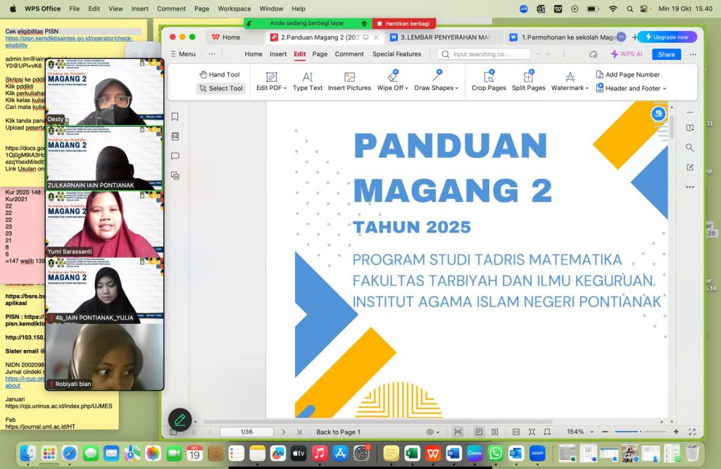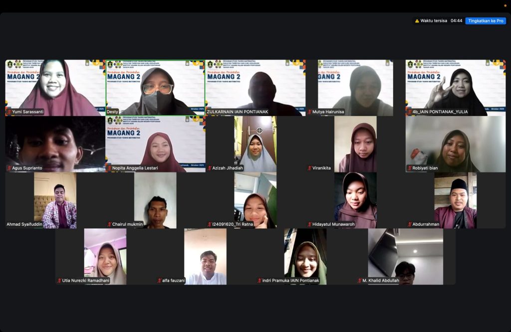Program Studi Tadris Matematika IAIN Pontianak secara resmi membuka kegiatan Magang 2 Tahun 2025 pada Jumat, 19 Oktober 2025. Acara pembukaan dipimpin langsung oleh Ketua Program Studi Tadris Matematika, Bapak Zulkarnain, S.Si., M.Pd.